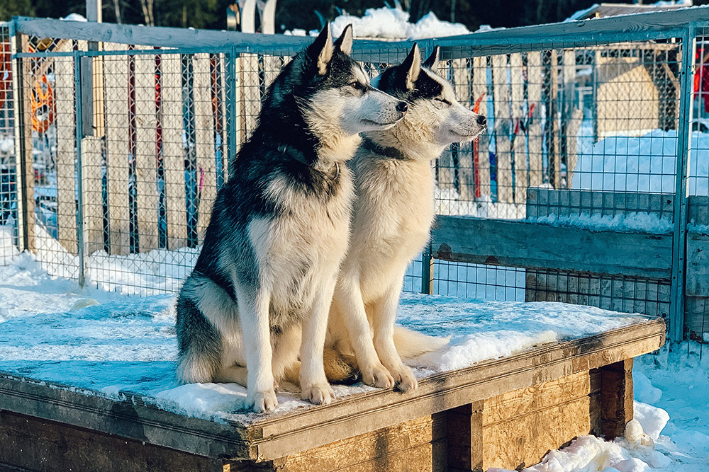 Após receber o equipamento completo de inverno, seguimos até um canil tradicional. Cada dupla conduzirá seu trenó por trilhas em meio a florestas e paisagens abertas por cerca de 5 horas.