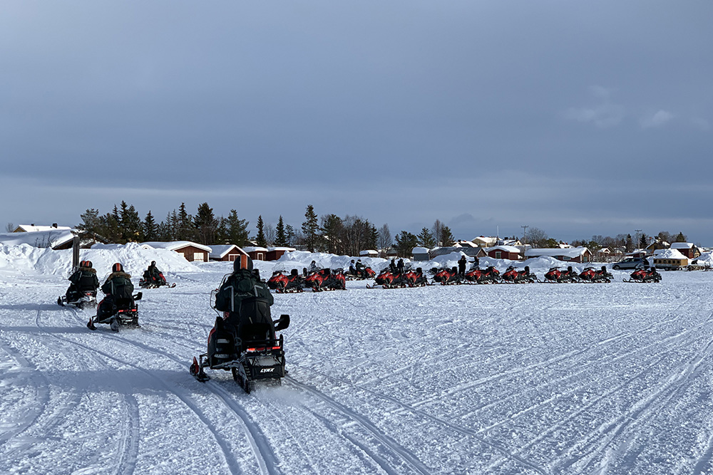 Após a visita, retorno para almoço e visita ao maior canil de cães de trenó da Suécia. Ao anoitecer, saímos novamente com snowmobiles em busca da aurora boreal — uma experiência única, explorando o Ártico no escuro, sob o céu estrelado.